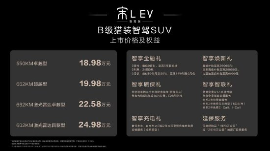中高配搭载激光雷达,比亚迪宋L EV智驾版售价18.98万元起
