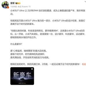 2月14日消息,刚刚雷军更新了自己的微博,并且还送出了小米SU7 Ultra的目标。