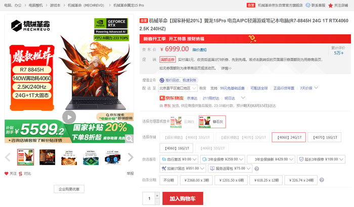 补贴后仅售5599.2元!机械革命翼龙15Pro可作游戏本卷王