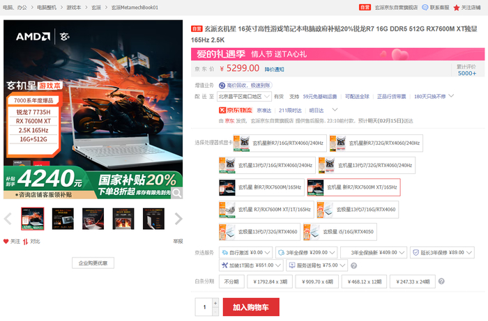 国补后降至4240元!玄派玄机星超威卓越平台笔记本限时特价