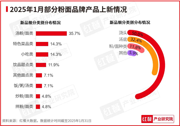 2025年1月,在红餐产业研究院监测的61个粉面品牌中,有15个粉面品牌共推出了44款新品。