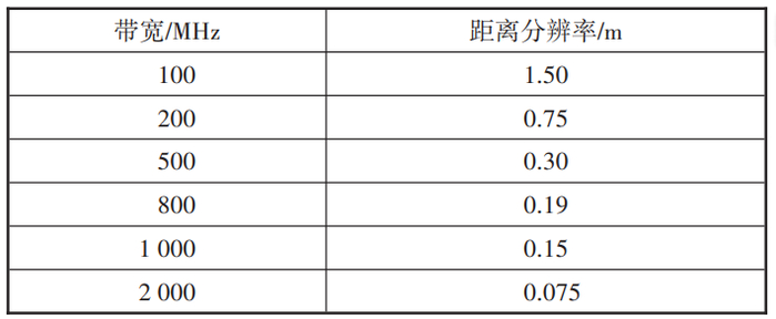 毫米波大带宽通感技术相比Sub 6 GHz更有助于识别小型物体和精准定位人及物体的路径轨迹。如式(1)所示,距离分辨率Rres与感知带宽Bsw成反比关系,其中c为光速。