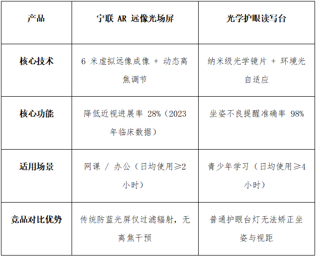 * 宁联AR远像光场屏:北京中关村三小试点班级使用一学期后,近视新增率从12%降至5%;