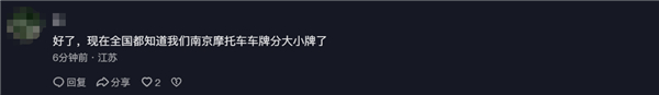 有网友表示:“江宁的牌闯紫金山了。”“好了,现在全国都知道我们南京摩托车车牌分大小牌了。”