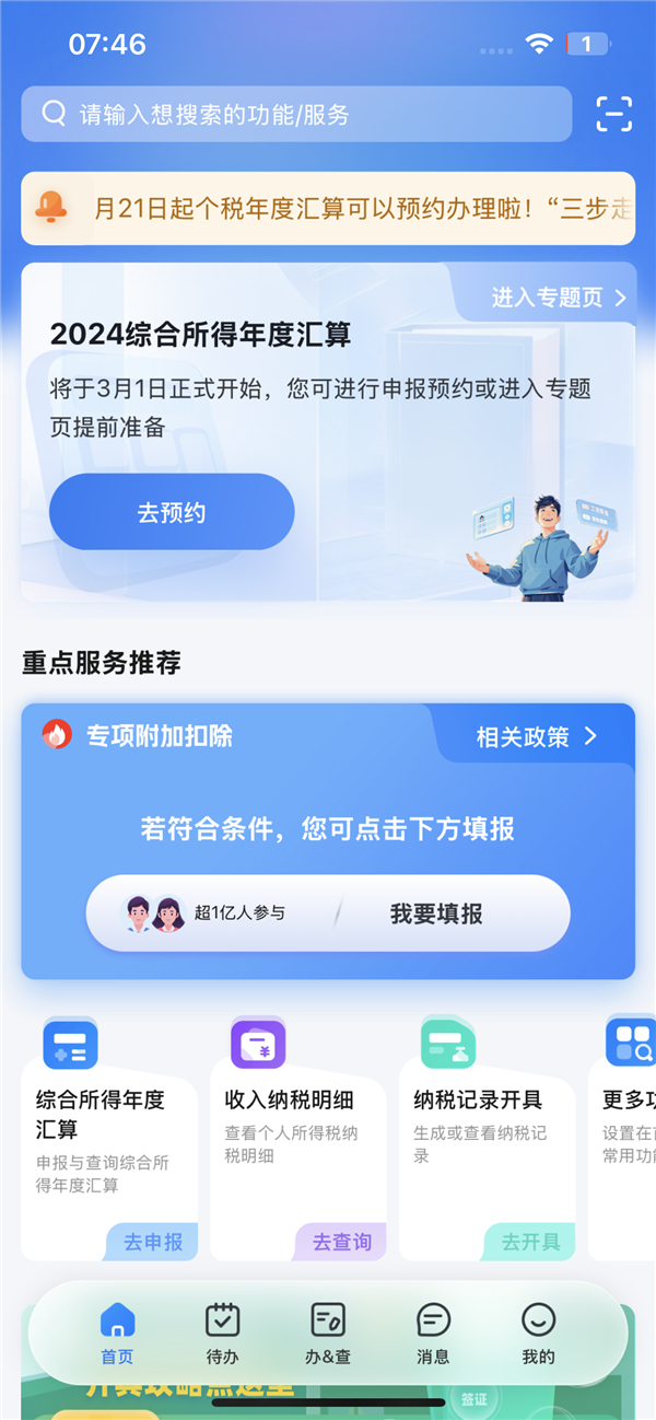快科技2月21日消息,据媒体报道,今天6:00起,2024年度综合所得个税汇算可以预约办理。