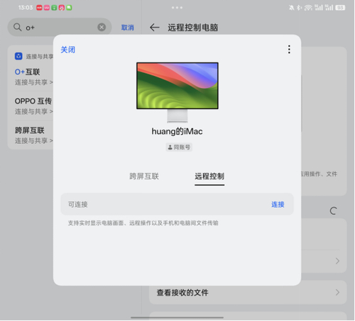 不同的是这里是安卓手机控制Mac,而且不用打通内网各种折腾,只需要同一账号连接过一次。只要Mac端不关机或休眠,OPPO Find N5就可以随时连上Mac。