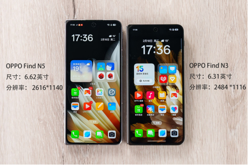 回到硬件部分,OPPO Find N5的外屏和主屏,分别增加到6.62和8.12英寸,主要是比例改变了。相比过去的方头方脑,新机外屏采用了跟主流直板接近的20.65比9,看上去会更修长。相对应内屏的比例,也比老款要靠近“长方形”一点。