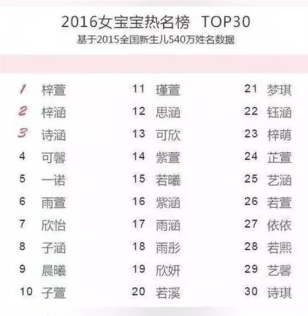 新生儿爆款名字终于脱离梓涵轩了:“丁梨”“年橙”获网友点赞 简单又好听