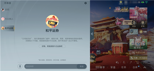 “吉事通”入口内还有“今日贵人”“和平运势”两种个性化娱乐互动,为玩家提供更多趣味体验。