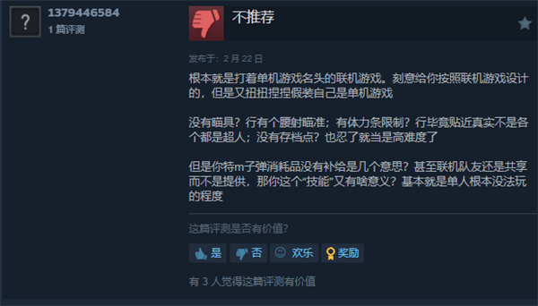“敌人人均特种部队,自己人人均天线宝宝,优化巨烂cpu占用爆炸,敌人刷新还有问题,不会用UE5就老老实实用UE4,还是别玩。”