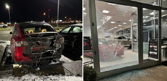 不过,这只是看到的平和一面,还有更多看不到的暴力事件。科罗拉多州Loveland的特斯拉门店,在短短十天内连续三次遭到打砸门窗,门店内停靠的多辆特斯拉还被人用红色油漆喷了纳粹字样,袭击者甚至还试图纵火焚烧特斯拉电车。目前警方还没有公布调查结果。