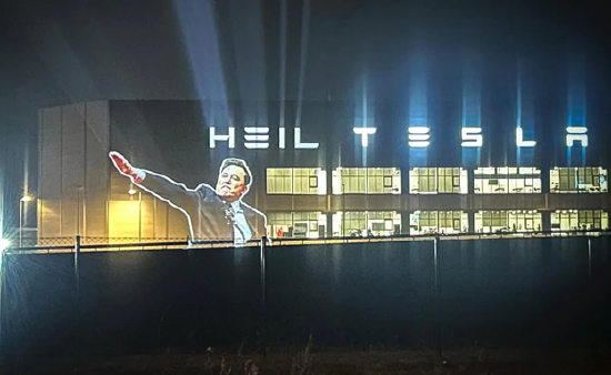 与美国相仿,在德国、奥地利、挪威、波兰等欧洲国家,左派民众也将对马斯克的不满怒火对准了特斯拉。在德国柏林的特斯拉超级工厂,两个左派活动机构将马斯克的争议手势以及他的言论用投影的方式,打在超级工厂的厂房上,还打出了Heil以及Boycott的字样,指责马斯克是纳粹,并呼吁公开抵制特斯拉。