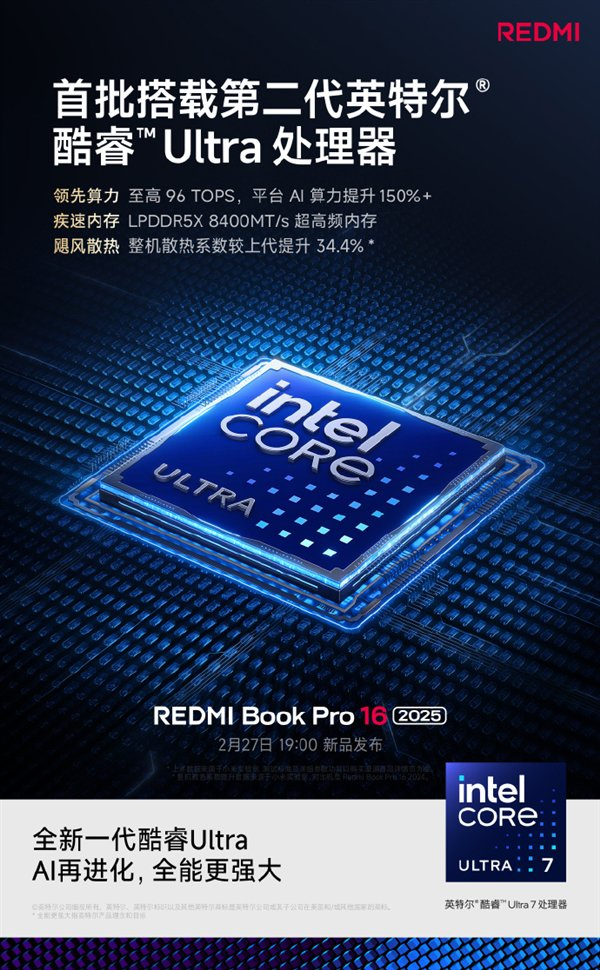 小米首款AI专业办公笔记本!REDMI Book Pro 16 2025首批搭载第二代酷睿Ultra