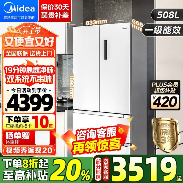 美的508升法式多门冰箱BCD-508WTPZM(E)促销信息
