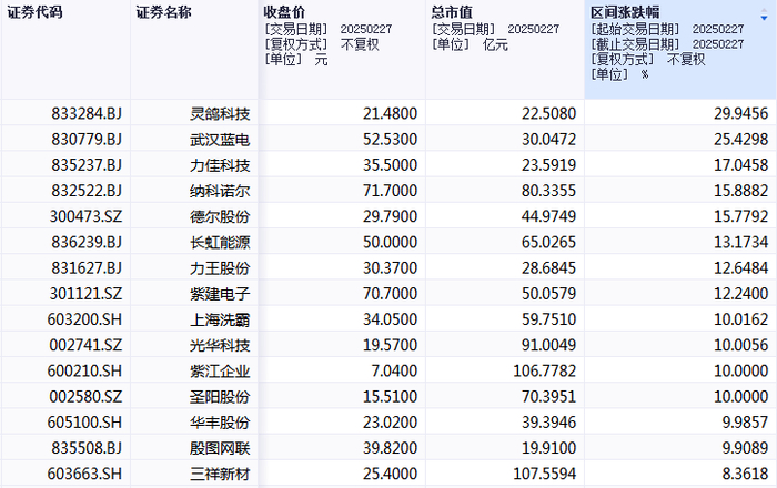 其中,纳科诺尔区间涨幅高达394.96%。此外,厦钨新能、豪鹏科技、金发科技、万润新能、蓝海华腾、雄韬股份、容百科技7家公司股价涨幅已超90%,有望于近期实现**。
