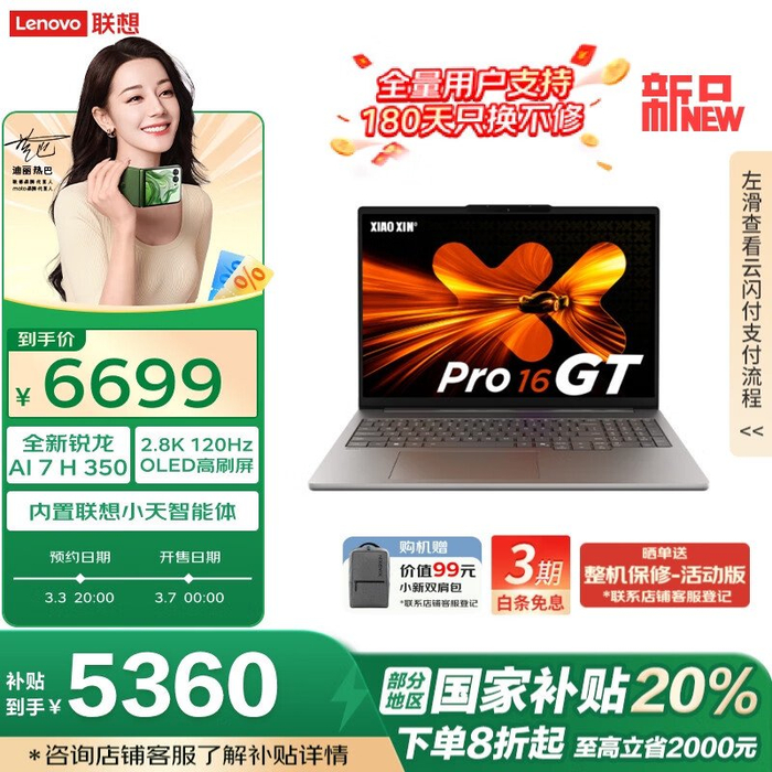 联想小新 Pro / GT 锐龙 AI 元启版笔记本开启预约,国补价 4640 元起