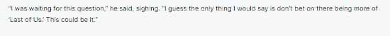 这样的回答显然让期待续作的粉丝感到失望,毕竟此前多次有消息称顽皮狗正在构思新的故事方向。但如今看来,即便团队有想法,也未必会将其付诸实践。