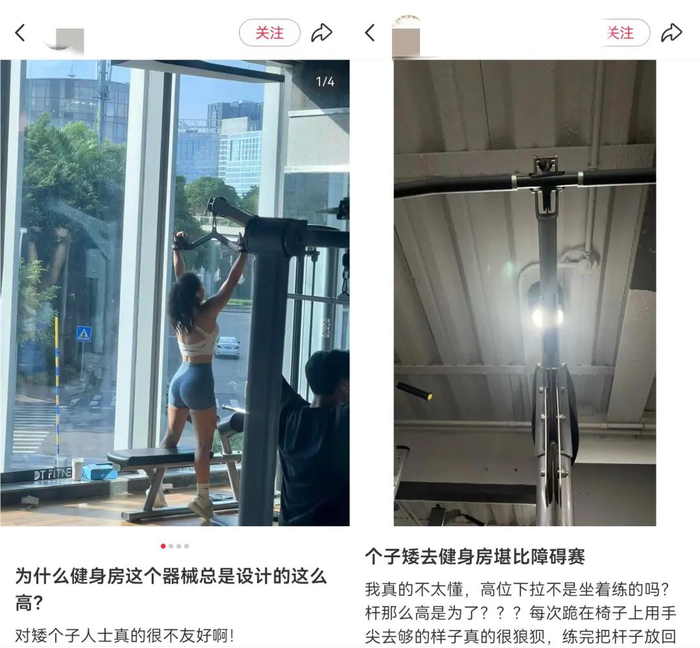 “高位下拉那个器械,我只能用有延长链的,要是没有延长链,我踮着脚才能够到握把。”身高158厘米的舒慧发现健身房的不少器械都不适合矮个子女生,不少器械就算调整到最小的档位,自己也够不到,如果去了使用固定器械的健身房,那一大半器械都用不了,“问了教练和老板,说器械都是复刻欧美器材的,小个子女生确实够不到,他们只能帮我垫个凳子凑合下”。