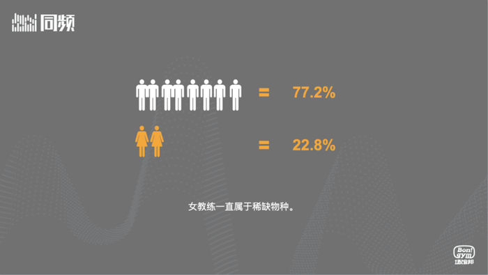 中国运动健身行业头部媒体《练吧》曾有数据显示,中国健身行业教练的男女比例约为8:2,女教练堪称“稀缺物种”。