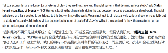 这当然不是CCP头一回深入研究游戏的货币系统,早在十几年前他们就曾聘请了冰岛经济学博士Eyjólfur Guðmundsson担任游戏的首席经济学家,按照CCP的说法来看,这位博士“对深度经济模型和货币政策的奠基性贡献将随着《EVE Frontier》的推进而得到延续,其开放环境将能够模拟先进的经济理论。”