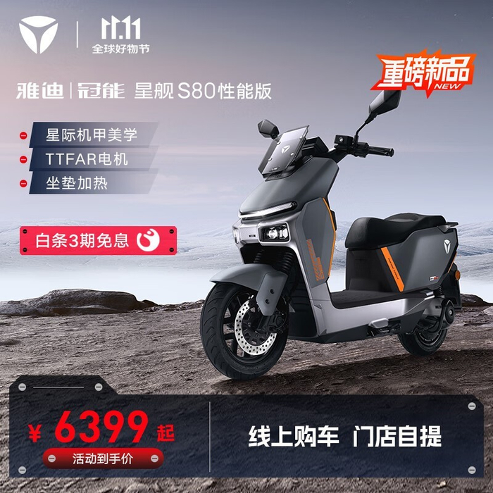 雅迪冠能星舰S80性能版电动摩托车京东促销到手6199元