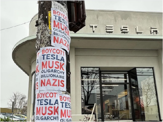 一些抗议者还会给特斯拉车主发传单,建议特斯拉车主尽快转售处理车辆,还列出了其他品牌电动车的替代选择。虽然传单并没有明确表示,如果车主不处理会有什么后果,但威胁意味已经很明显。硅谷也出现了这样的传单。