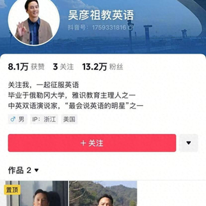 近日,抖音上出现了一个名为“吴彦祖教英语”的账号,账号介绍中写着“毕业于俄勒冈大学,雅识教育主理人之一,中英双语演说家,‘最会说英语的明星’之一”。目前,该账号共发布了两条视频,置顶的一条是关于其身份转变的介绍,另一条则是吴彦祖对热映电影《哪吒2》知名台词的翻译。