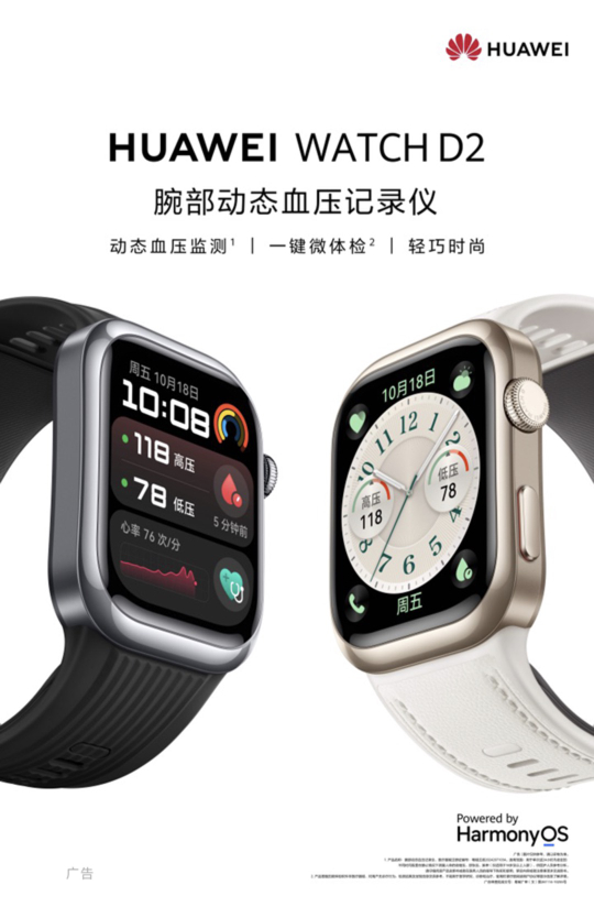 玄玑感知系统赋能,华为WATCH D2成为业界首款符合医疗标准的腕上动态血压表,造福高血压患者。动态血压监测被誉为高血压诊断和评估降压效果的金标准。华为WATCH D2通过超窄力学气囊与血压融合算法,支持24小时动态血压监测,无论是白天的活动状态还是夜间的睡眠状态,都能进行连续、自动的血压测量,能够更真实地反映患者的血压水平,有效识别隐蔽性高血压以及夜间高血压等特殊情况。