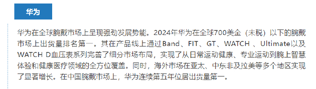 华为穿戴2024年出货量增速全球第一,连续五年称霸中国市场