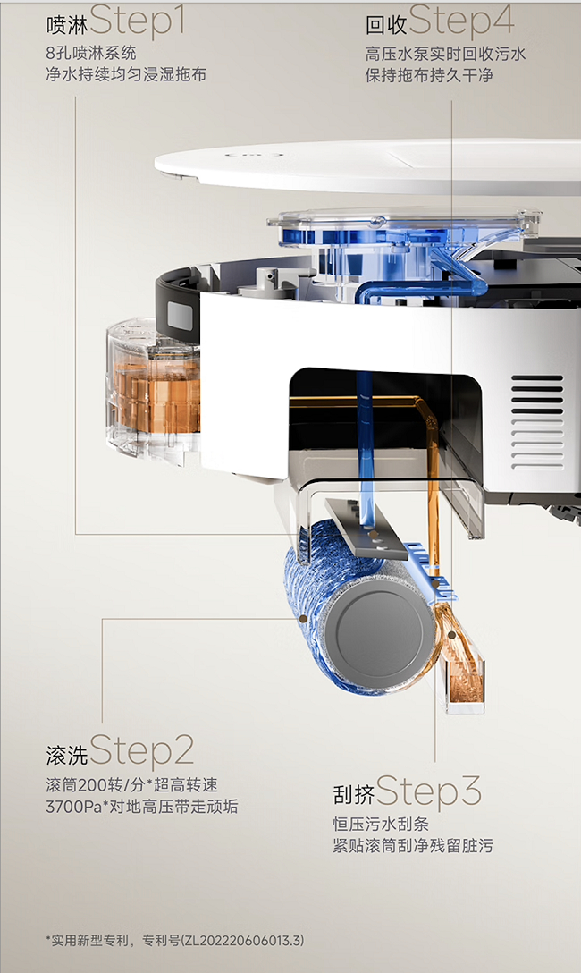 滚筒洗地清洁力是普通扫地机器人的16倍