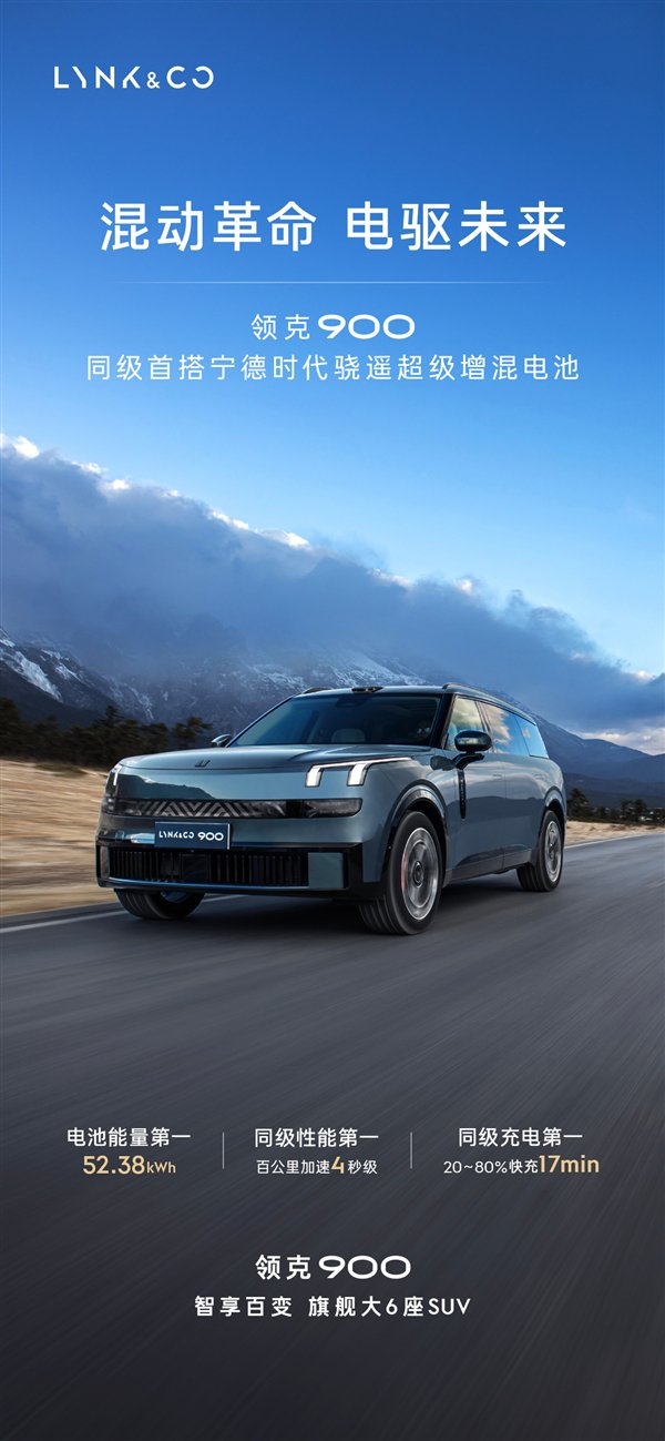 快科技3月12日消息,领克汽车官宣,品牌旗下旗舰SUV领克900将同级首发52.38kWh宁德时代骁遥超级增混电池,解决了增混车型的两大痛点。