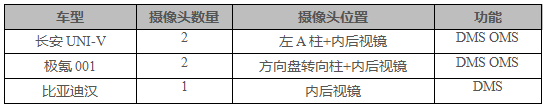 (1)单摄像头方案,大多数集成在驾驶员侧的A柱或方向盘,功能主要是人脸识别(包括发动机启动、车机系统进入以及座椅个性化调节等)和疲劳分心监测。