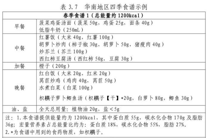 《成人肥胖食养指南(2024年版)》中的华南地区春季食谱
