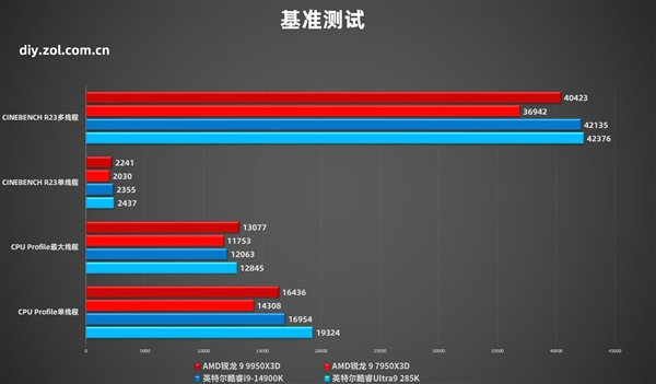 在基准软件的测试中,AMD锐龙9 9950X3D对比上代AMD锐龙9 7950X3D则有大幅提升,基准跑分差距其实与隔壁两款旗舰型号在进一步缩小。目前来看AMD锐龙9 9950X3D还是实战利器,基准跑分并不是强项。