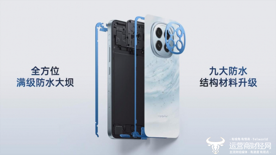 OPPO A5 系列新品全系通过 IP69、IP68、IP66 三防认证,全系标配满级防水冠绝同档,整机应用了九大结构及材料上的防水强化设计,全方位构建「防水大坝」,防水能力拓展到了更严苛、更多样的水环境,可抵御暴雨、泡水、高压喷水、热水蒸汽等18种复杂水环境挑战,真正做到整机防水,不挑种类。