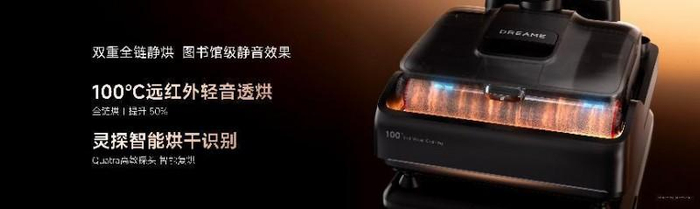 除了深度清洁外,追觅T50 Ultra还搭载了行业首创的100℃远红外轻音烘透技术,通