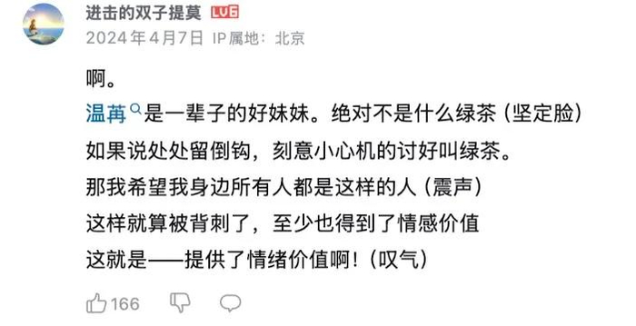 擦边吗?还好,因为画面上不过是温苒楚楚可怜的脸庞,与动不动就要脱光跳舞的其他作品比起来更加委婉,甚至称得上是“优雅”。