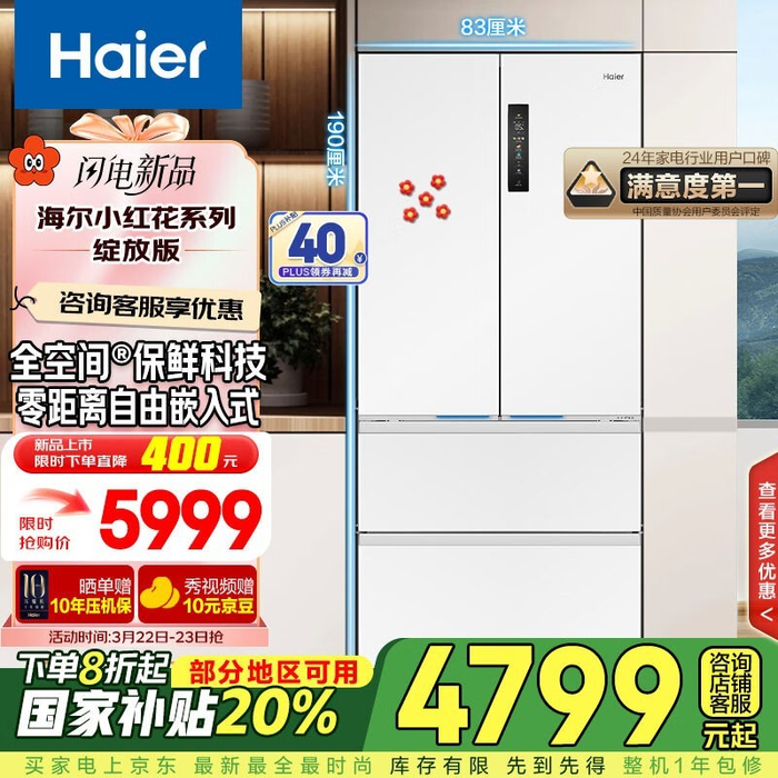 海尔503升全空间保鲜法式多门冰箱低至4799元