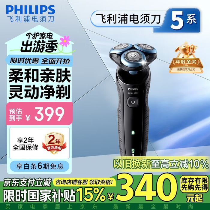 飞利浦S5066电动剃须刀智能感应近期好价到手288元