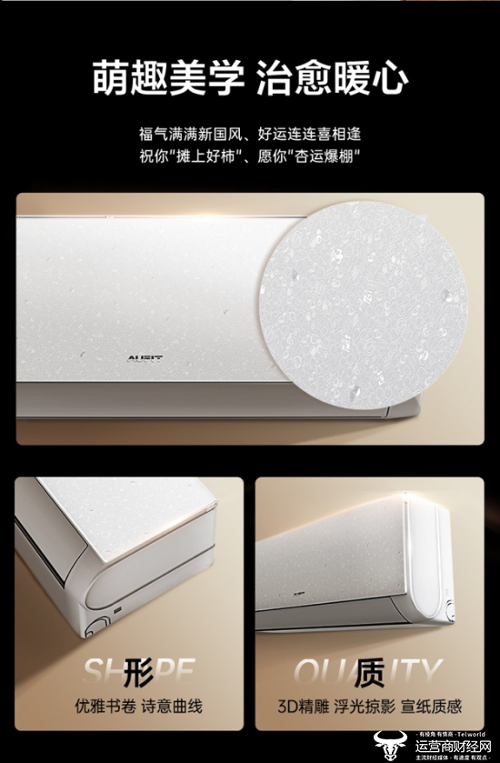 潮流美学,提升家居颜值。年轻消费者在选购家电时,不仅关注性能,颜值也是影响购买决策的重要因素。AUFIT设计团队深谙"家电即家具"的年轻消费哲学,“特省电”系列融入国潮美学概念,机身采用高精度激光微雕工艺,结合传统文化元素,让空调兼具实用性和装饰性。