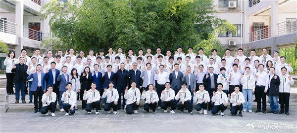 武汉大学官微晒图:雷军与武大同学拍合照 一起比OK