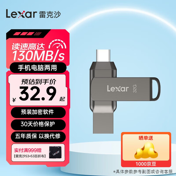 雷克沙D400 64GB双接口U盘京东超值价18.15元