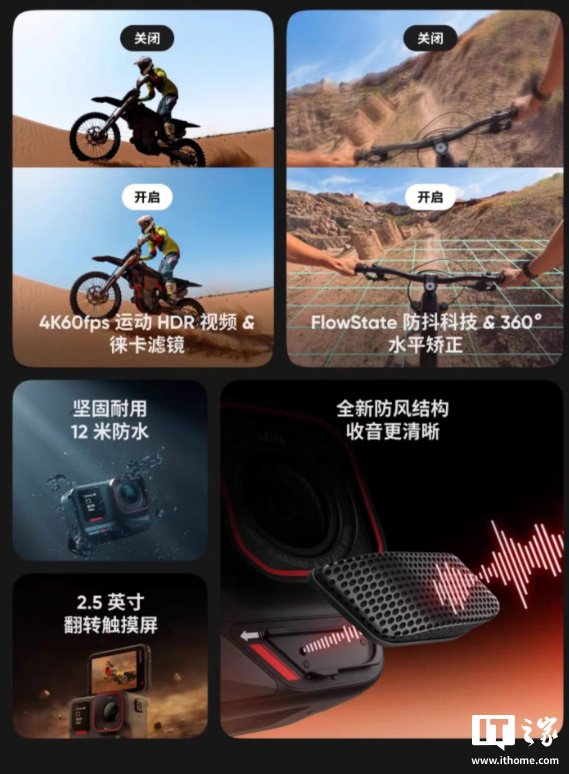 同时影石表示,Ace Pro 2 运动相机拥有全新人像模式,优化肤色和面部细节;与徕卡合作滤镜,融入徕卡标志性色彩美学,并配有徕卡定制相机水印;在 iOS 版 Insta360 App 中,截取视频片段可生成 LivePhoto,并可使用徕卡自然 / 鲜艳滤镜。