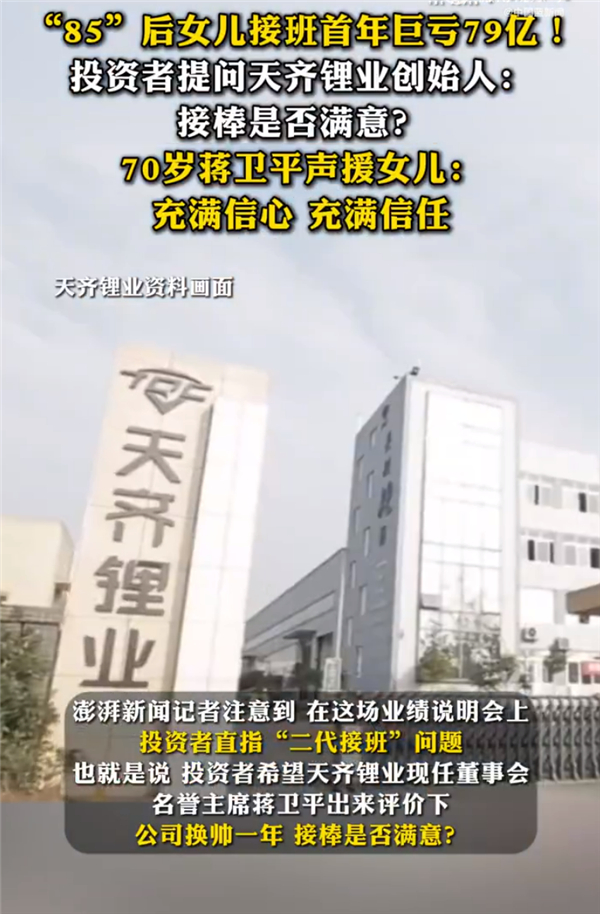 天齐锂业二代接班首年巨亏79亿 创始人声援:充满信心