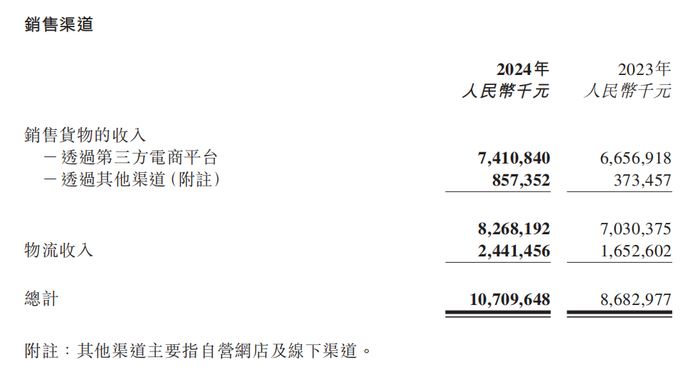 按照商品销售渠道划分,2024年,傲基通过第三方电商平台实现销售收入74.1亿元,同比增长11.32%;通过其他渠道(主要为自营网店及线下渠道)实现销售收入8.57亿元,同比增长129.5%。