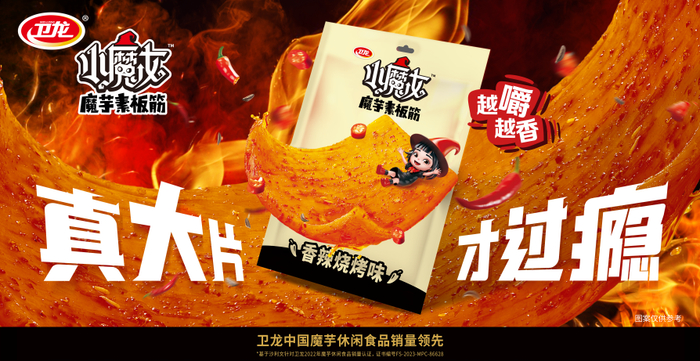 小魔女魔芋素毛肚自2023年10月上市以来,市场反响热烈,备受年轻消费者喜爱。去年2月,卫龙正式官宣上市麻酱火锅味新品,系小魔女诞生四个月后的火速再推新,卫龙以其强大的造血能力进一步满足了当下消费者的多元化口味需求,也让市场看到卫龙品牌将凭借新口味深入占位“魔芋素毛肚”产品类目,持续在魔芋品类中打造增长极的勃勃雄心。