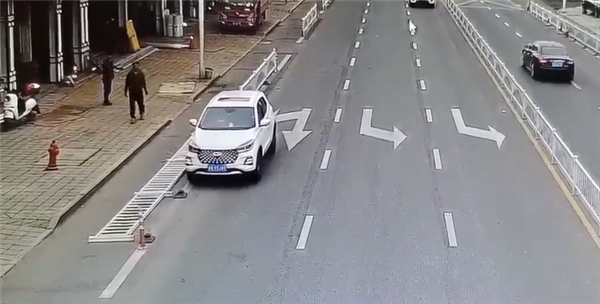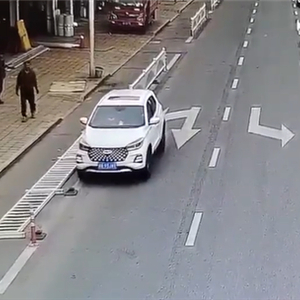 视频显示,在某地马路上,一辆在路边临停的白色奇瑞SUV突然启动,慢悠悠往前开去,并蹭到了金属护栏,甚至由于车道偏离,直接将一排护栏给碾压倒地,最终在撞到障碍物后才停了下来。