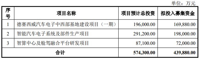 同日,德赛西威发布了向特定对象发行A股股票募集说明书(注册稿)。本次发行的募集资金总额不超过 439,880.00 万元(含本数),扣除发行费用后的募集资金净额将全部用于德赛西威汽车电子中西部基地建设项目(一期)、智能汽车电子系统及部件生产项目和智算中心及舱驾融合平台研发项目三大项目。