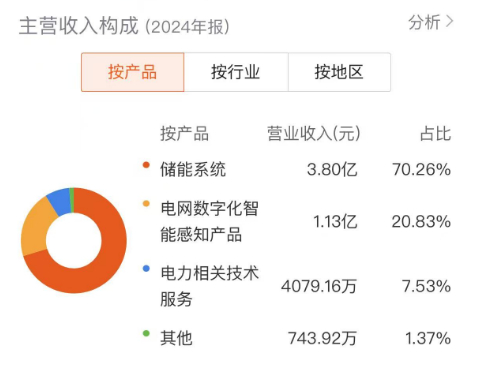 分产品来看,杭州柯林的储能系统产品实现营收3.80亿元,同比增长1598.95%,增幅明显。此外,该产品营收占比达到70.26%,核心产品的快速发展,推动公司的业绩显著提升。