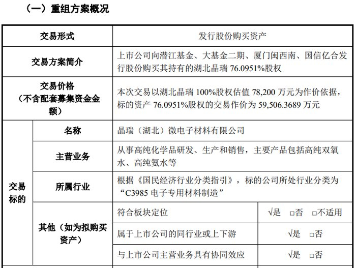 交易价5.95亿元,晶瑞电材拟发行股份购买湖北晶瑞76%股权
